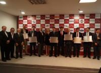 O presidente da Aurora Alimentos, Mário Lanznaster, foi um dos homenageados na entrega do Prêmio Carne Forte, reconhecimento entregue hoje, dia 9, na solenidade de abertura da Expomeat, em São Paulo (SP). Representado pelo presidente do Conselho Diretivo da Associação Brasileira de Proteína Animal (ABPA) e Diretor Comercial da Aurora, Leomar Somensi, Lanznaster foi condecorado como destaque na categoria “carne suína”. “A Aurora trabalha incessantemente na busca pela total garantia de qualidade para nossos consumidores. São mais de 100 mil famílias cuidando da sua”, disse Somensi, durante a entrega da premiação. Com ele, outras personalidades do setor de proteína animal – entre eles, o presidente-executivo da ABPA, Francisco Turra – também foram homenageados. Conforme a organização do Expomeat, o Prêmio Carne Forte é um reconhecimento voltado para as personalidades mais importantes da cadeia produtiva de proteína animal. Mais de 700 empresas foram consultadas para a escolha dos premiados, entre fornecedores do setor de proteína animal, editores de publicações especializadas e dirigentes de organizações públicas e privadas. O nome do prêmio é uma alusão à Operação Carne Fraca, deflagrada pela Polícia Federal em março deste ano. Fonte:Porkworld